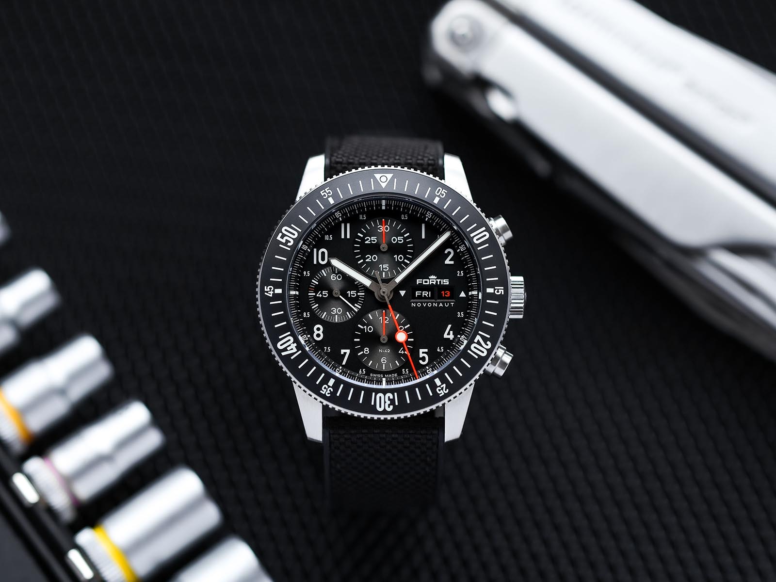 Nach der ikonischen B-42 Official Cosmonauts als legendärer Weltraumuhr, präsentiert Fortis nun den neuen Novonaut mit Keramiklünette. Angetrieben durch das Fortis Werk 17 mit 60 Stunden Gangreserve – ein Schaltrad-Chronographenwerk, das für höchste Präzision unter allen Bedingungen konzipiert ist. Alle Fortis Uhren durchlaufen strengste Qualitätstests. Als Marke die auch für die Eroberung des Weltraums bekannt ist, hat man ein hochmodernes Labor mit der neuesten Technologie zur Qualitätskontrolle eingerichtet.